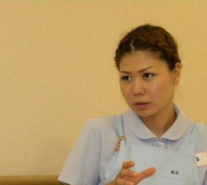 角谷さんは高校を卒業後、病院の看護助手として 奈良東病院で介護の仕事に就いて3年目。
